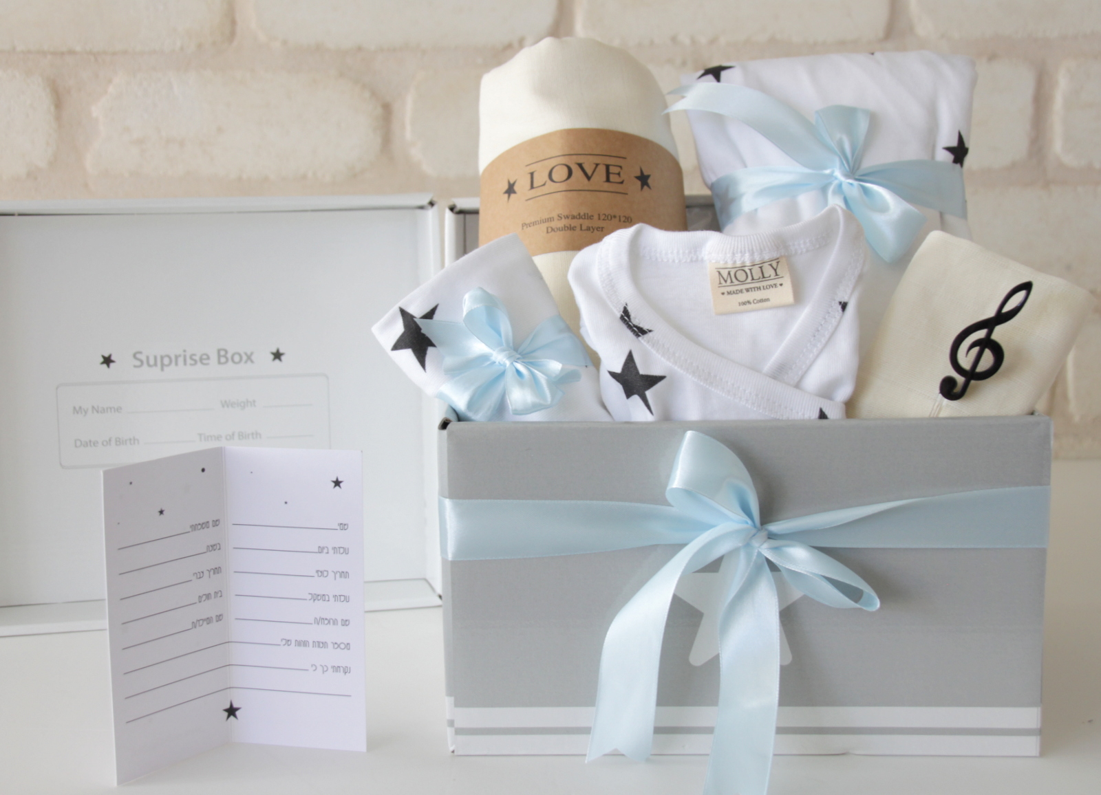 - קופסת מתנות קשיחה בינונית Molly מתאימה לאחסון & מכסה הניתן לכתוב את פרטי התינוק/ת גודלה 14.5*21*24