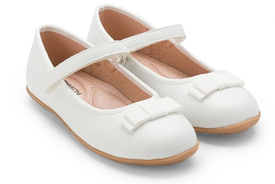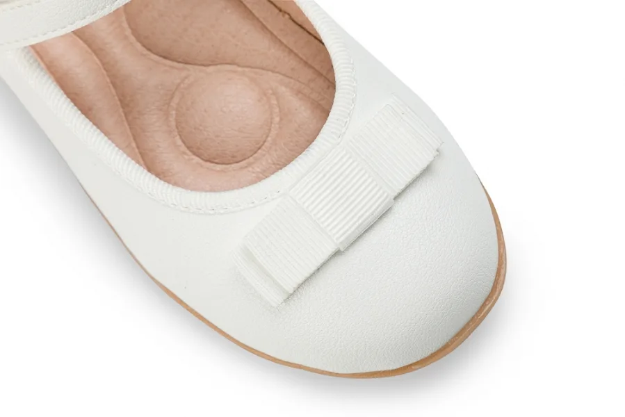נעלי בובה בלרינה לילדות פפיון לבן במידות 25-32