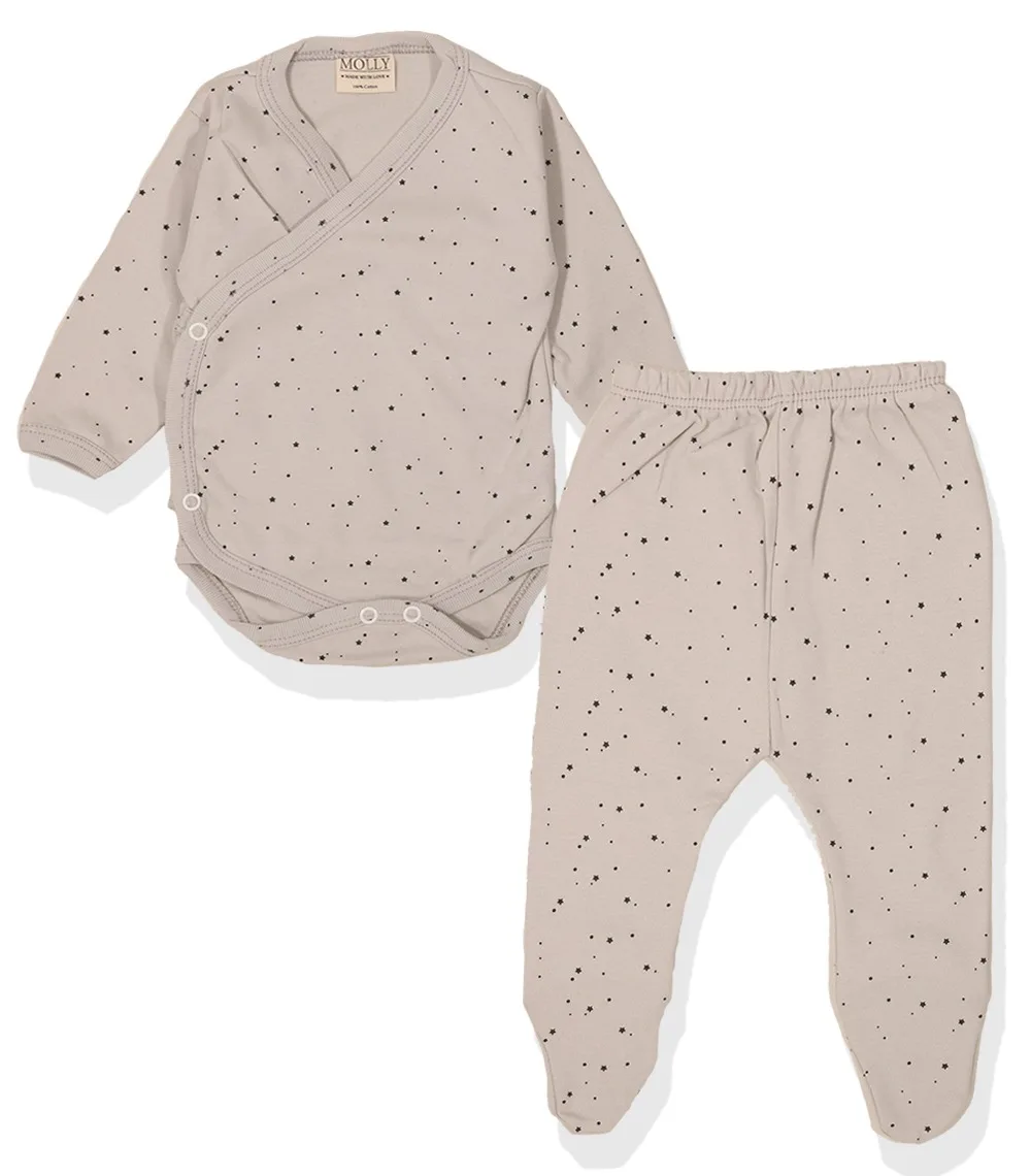 - סט בגדים Molly הכולל בגד גוף מעטפת & מכנסיים רגלית 100% כותנה/ פלנל בהתאם לעונה