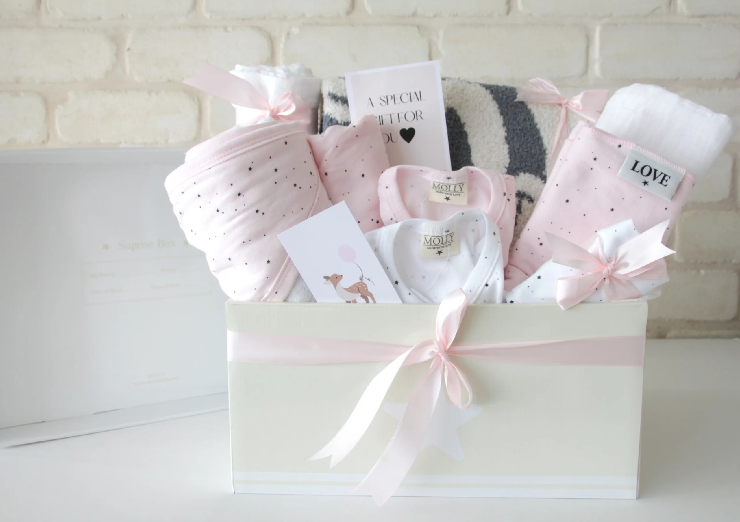 - קופסת מתנות קשיחה גדולה Molly מתאימה לאחסון & מכסה הניתן לכתוב את פרטי התינוק/ת גודלה
