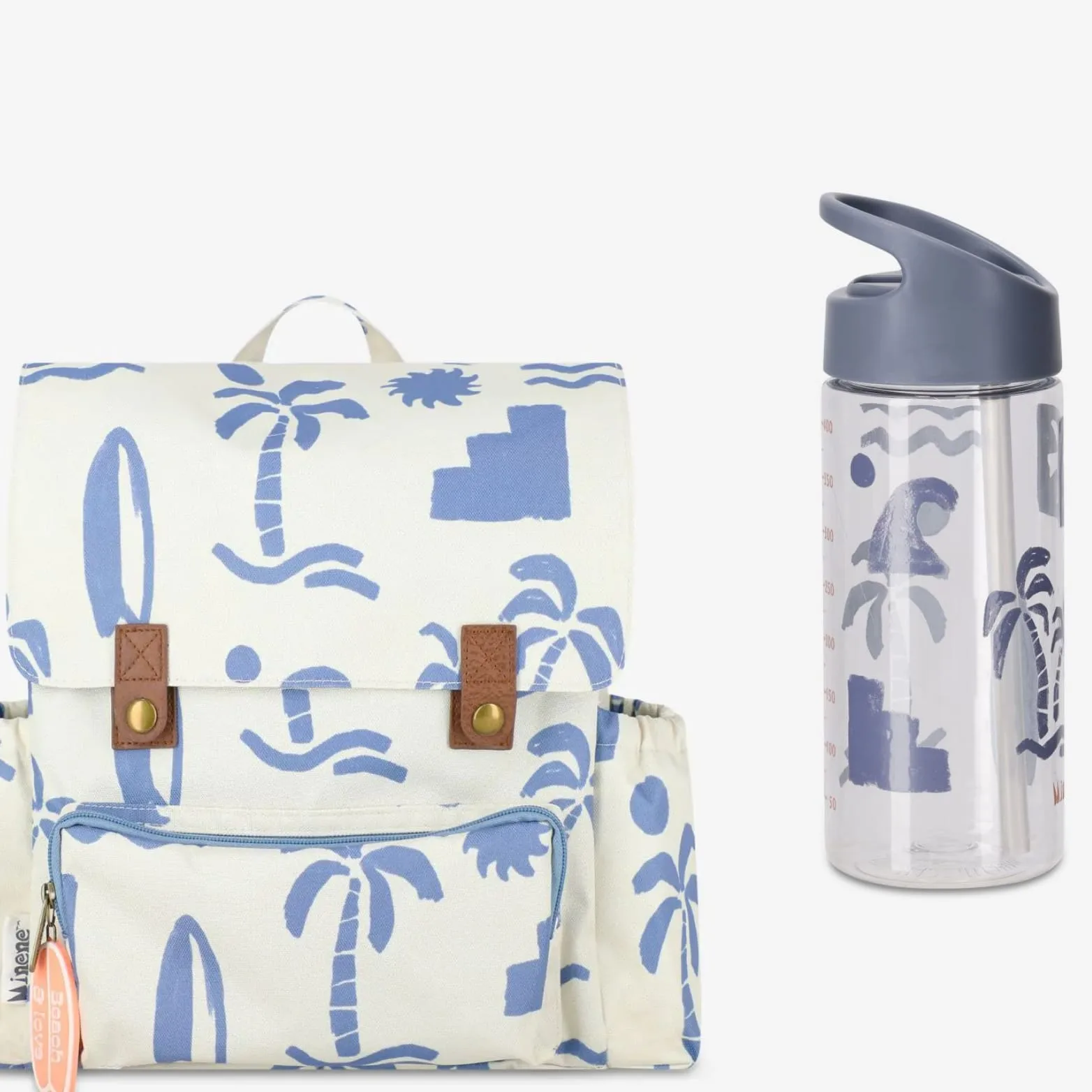 תיק גן לילדים גדול גלישה + בקבוק שתייה עם קש תואם מיננה