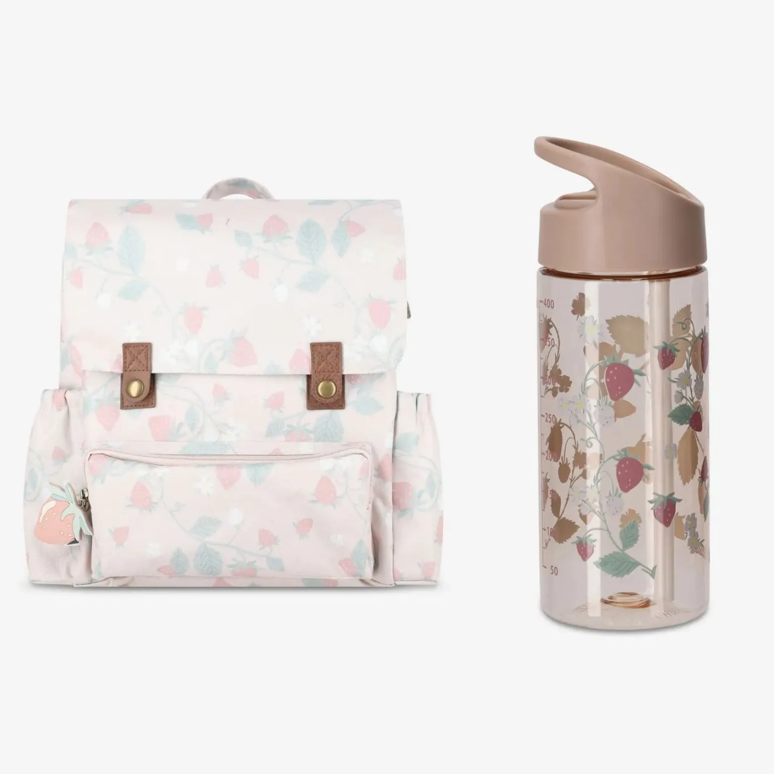 תיק גן לילדים גדול תותים + בקבוק שתייה עם קש תואם מיננה